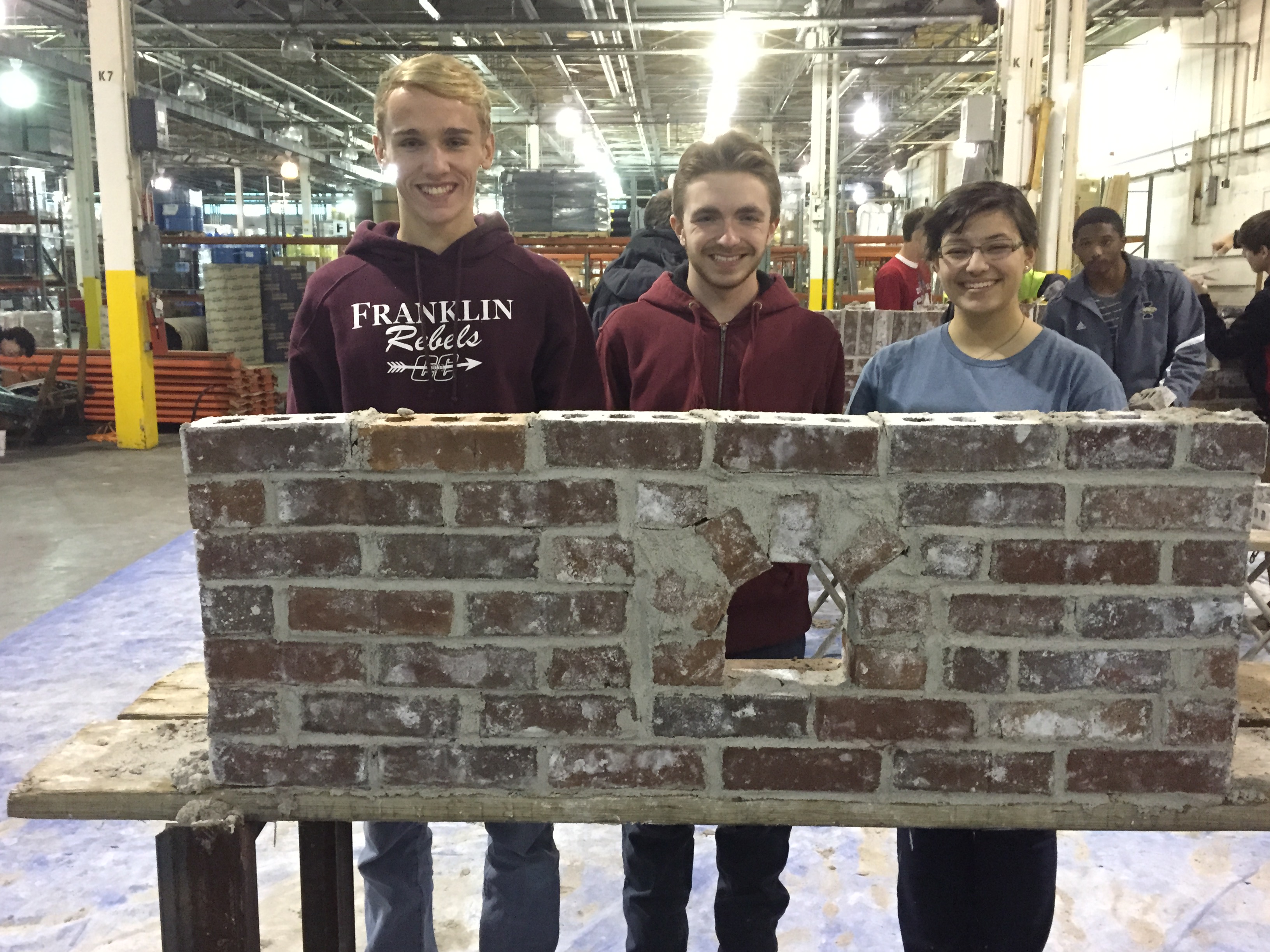 Our most well-attended meeting was hosted by Wasco Masonry, Inc. Several employees from Wasco taught the students how to construct a brick and mortar wall – then the students were put to work! They broke into small teams and began to set the foundation of their wall. The students looked like pros this year and were challenged to create windows and arches. The final products looked phenomenal.